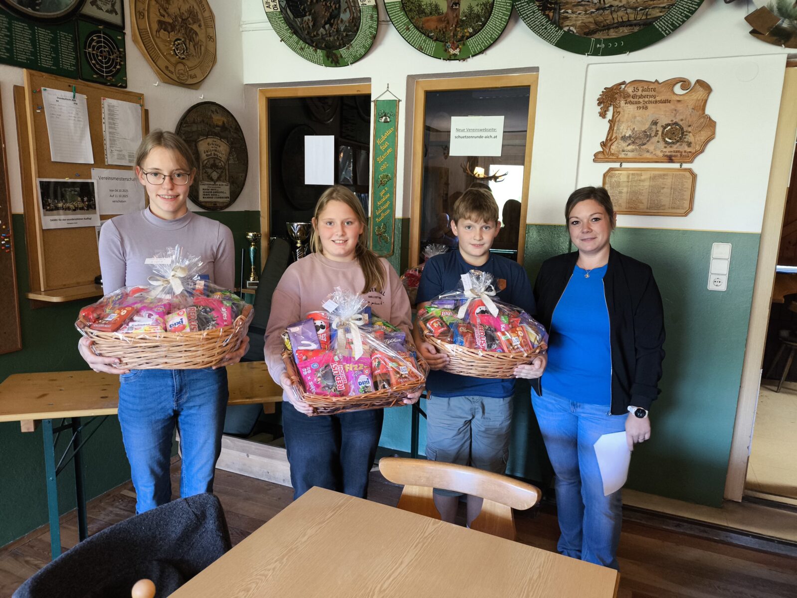 Am Nachmittag folgte die Siegerehrung – die Spannung war groß! 30 TeilnehmerInnen waren am Start, und die Besten wurden mit schönen Geschenkkörben belohnt. Besonders freut uns die Teilnahme einiger Jungschützen – weiter so!